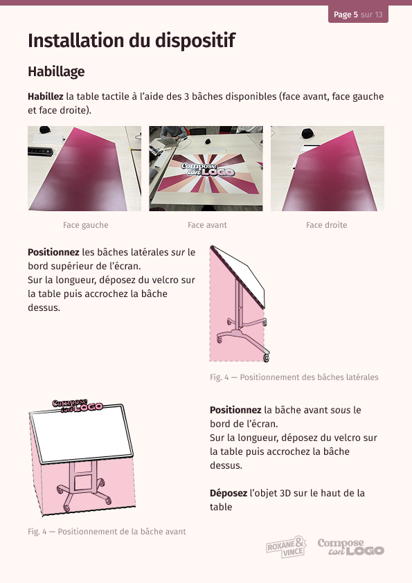 - Un habillage personnalisé constitué de trois bâches imprimées (faces avant, gauche et droite) fixées par velcro.