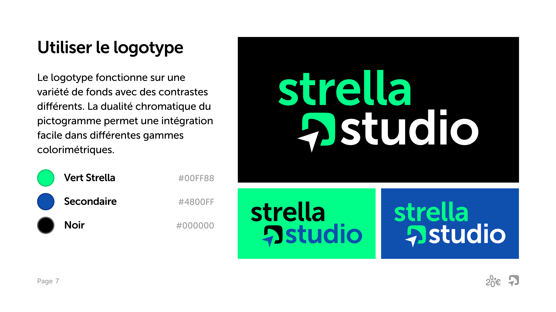 Pour l'association StrellaStudio, j'ai été amené à concevoir une identité visuelle complète, comprenant un logo, une charte graphique et des éléments de communication. L'objectif était de créer une image de marque forte et cohérente pour le studio, reflétant ses valeurs et son positionnement dans le domaine du développement Web.